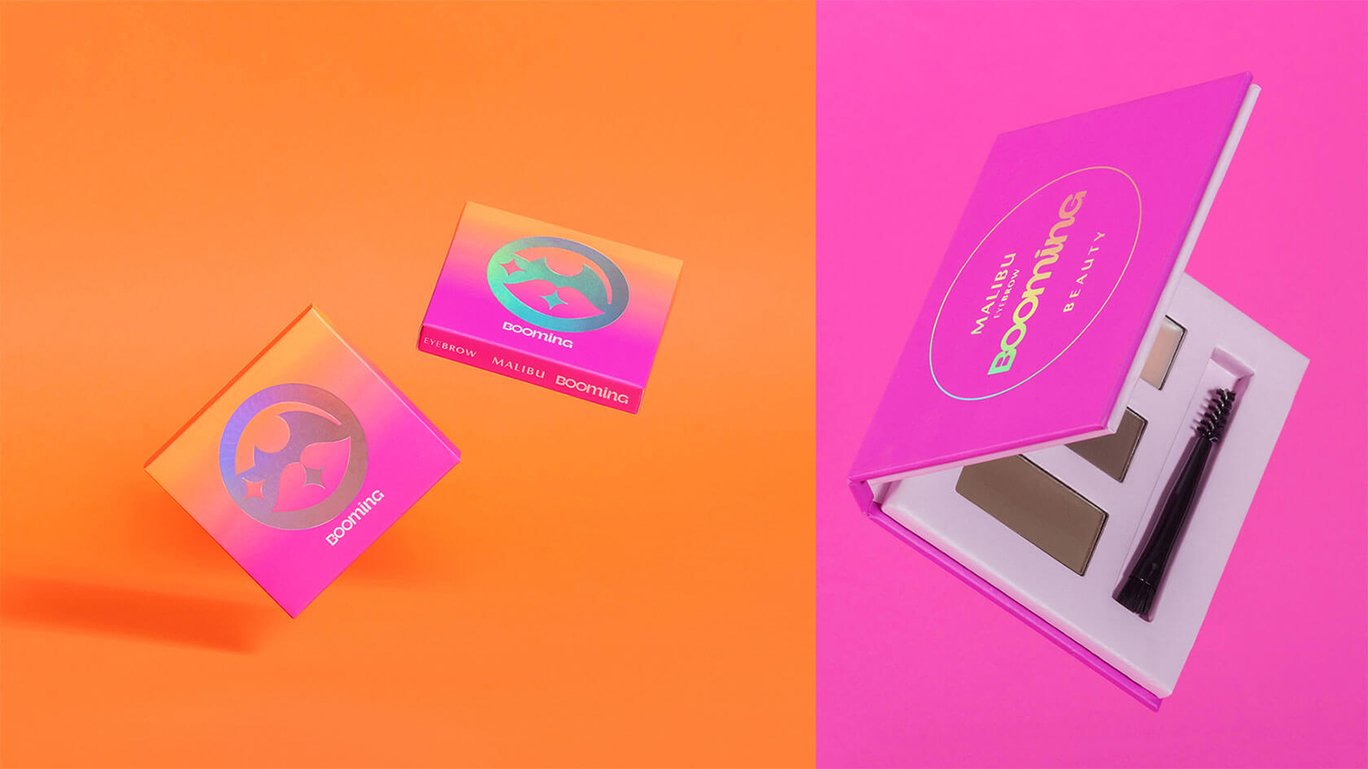 在包裝工藝創(chuàng)新方面,設(shè)計師特別采用虹彩覆膜與閃耀箔片燙印技術(shù),使容器表面隨光線流轉(zhuǎn)呈現(xiàn)動態(tài)光效,賦予產(chǎn)品極具辨識度的視覺張力。這些匠心獨運的設(shè)計語言不僅構(gòu)建了獨特的視覺層次,更從美學(xué)維度強化了Booming品牌的核心主張——鼓勵消費者突破傳統(tǒng)審美邊界,在色彩游戲中探索美的無限可能。