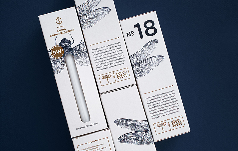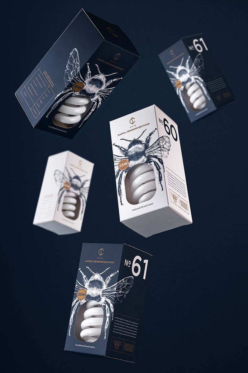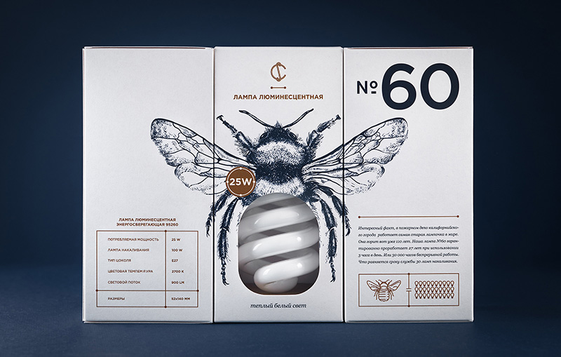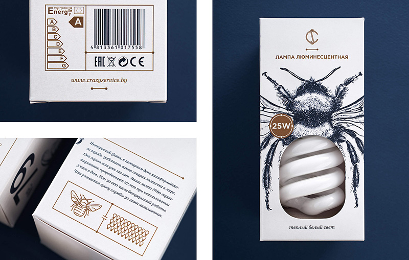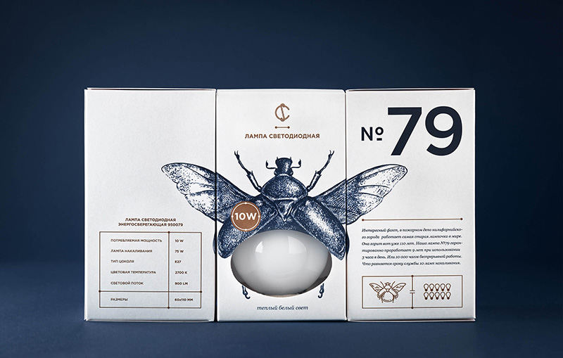 白俄羅斯最大的電器公司CS Electric設(shè)計的一款燈泡包裝。設(shè)計靈感來源于大發(fā)明家愛迪生,愛迪生生前一直認(rèn)為螢火蟲尾部發(fā)出的冷光,是最適合人類的光源。于是設(shè)計人員受這一點的啟發(fā),設(shè)計了插畫風(fēng)格獨特包裝的燈泡包裝盒。